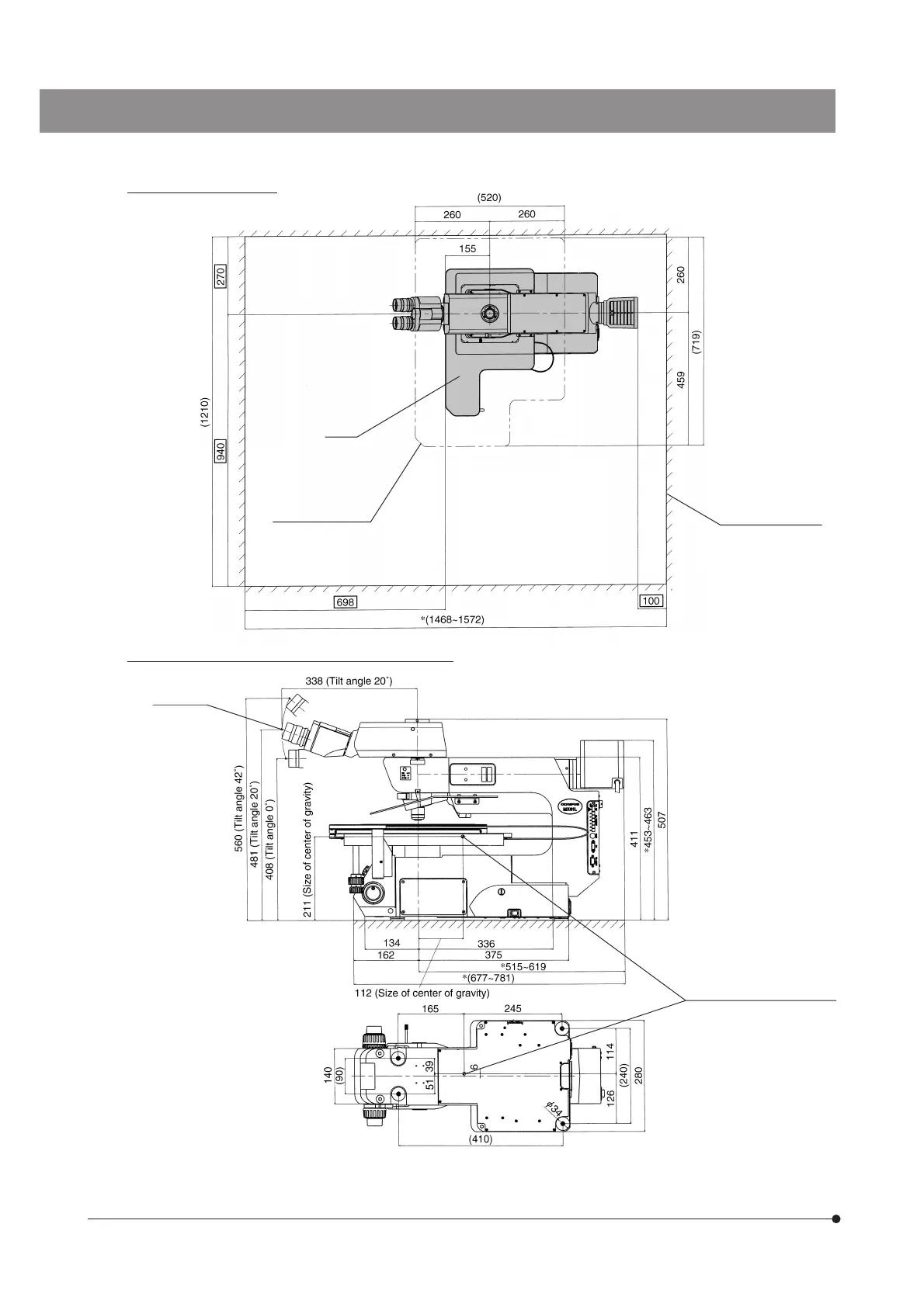 Olympus MX61 - MX61 Installation Space; MX61 L External View, Eye Point and Center of Gravity