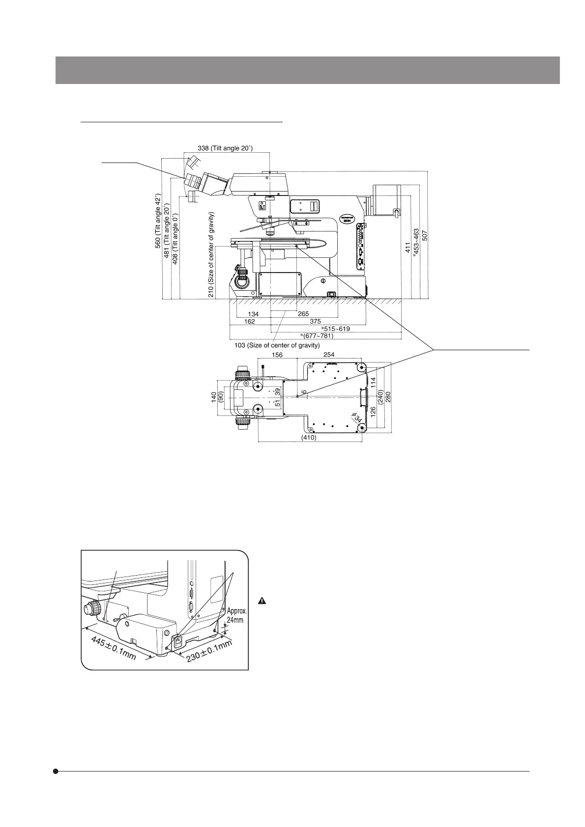(Note) The center of gravity is an approximate position when the microscope is equipped with the standard module
