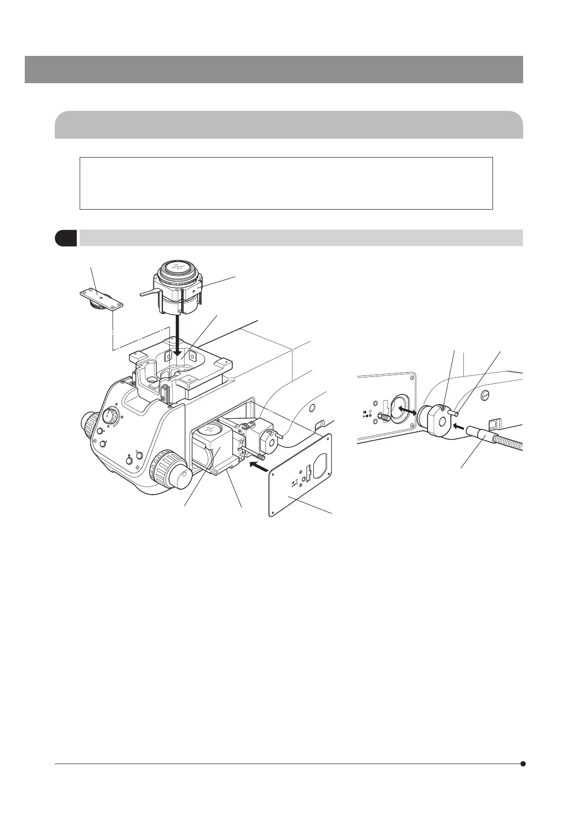 6. Raise the focus adjustment section to the highest position, align the dovetail groove ƒ of the illuminator unit | with the