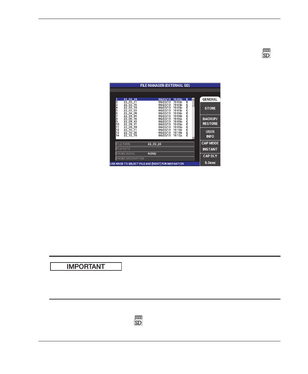 SD card’s data contents are copied to replace the instrument’s internal memory.