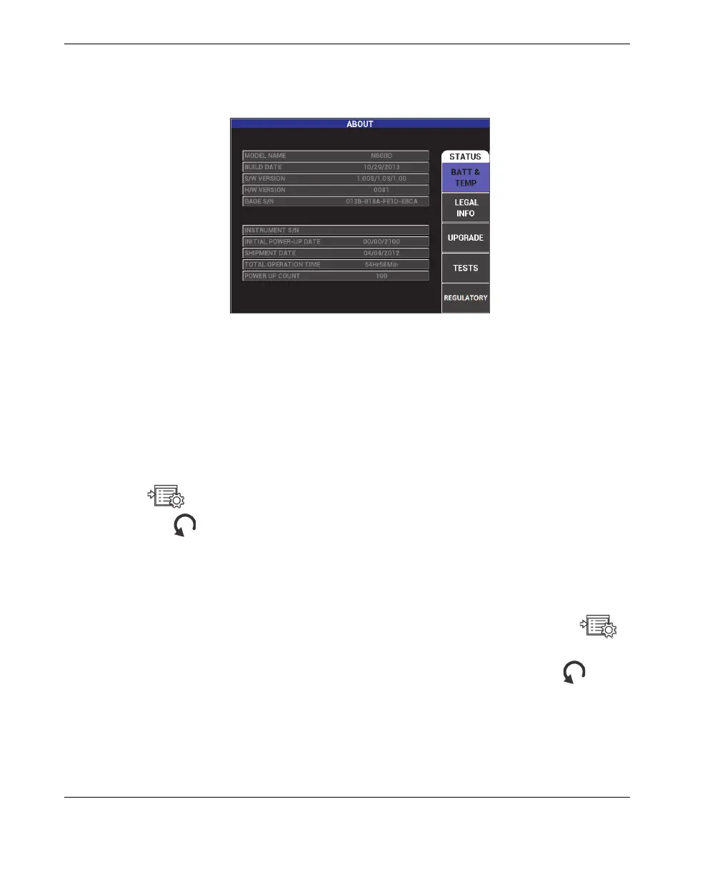 information), UPGRADE (instrument software upgrade), and TESTS (see