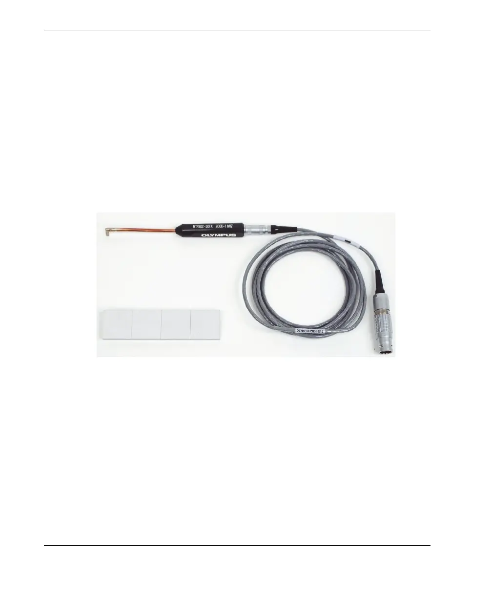 5 mm (0.20 in.) drop (90° bend) at tip; operating frequency 200 kHz to 1 MHz,
