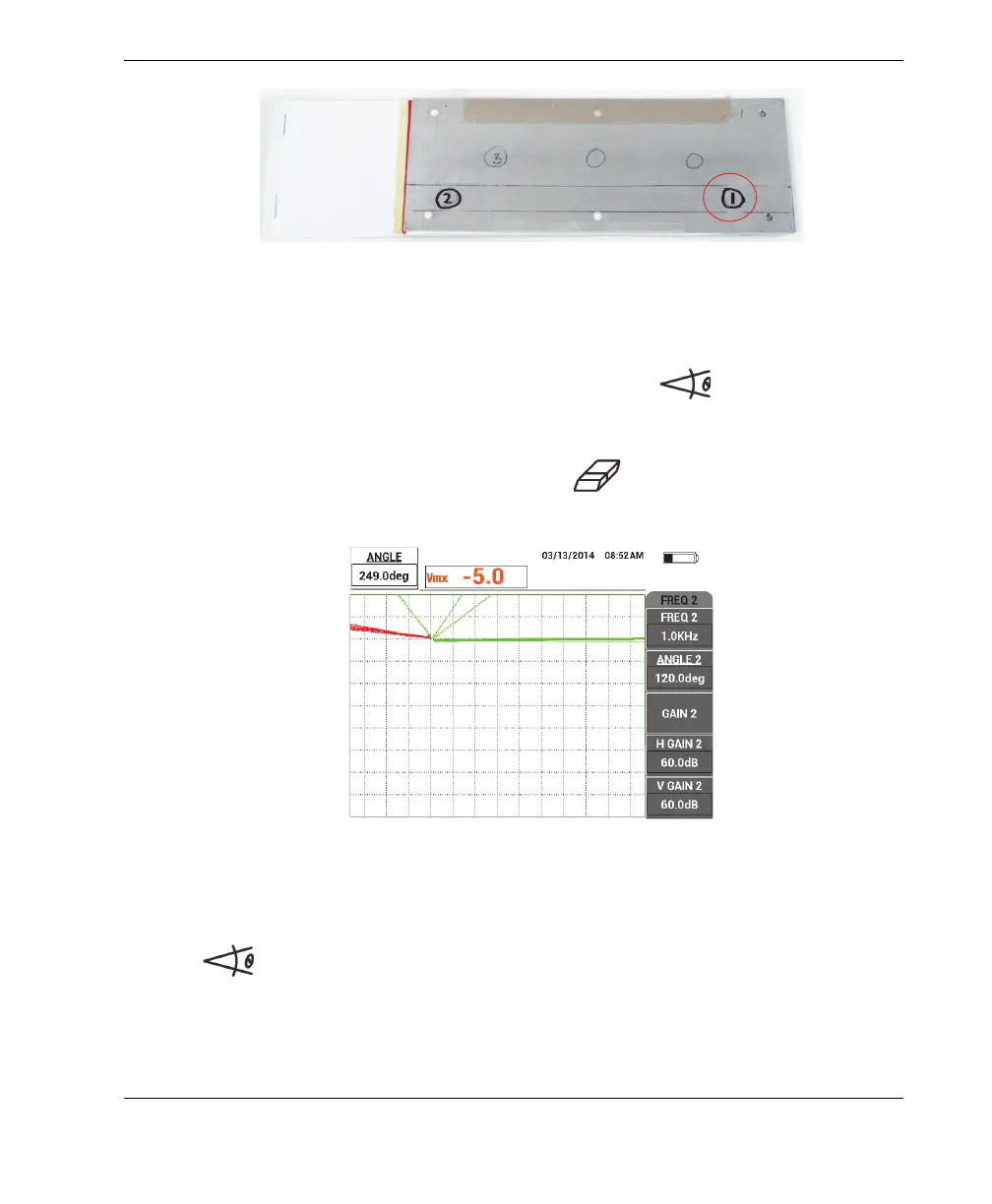 5. While continuing to gently tap the probe on position 1, press the ANGLE key