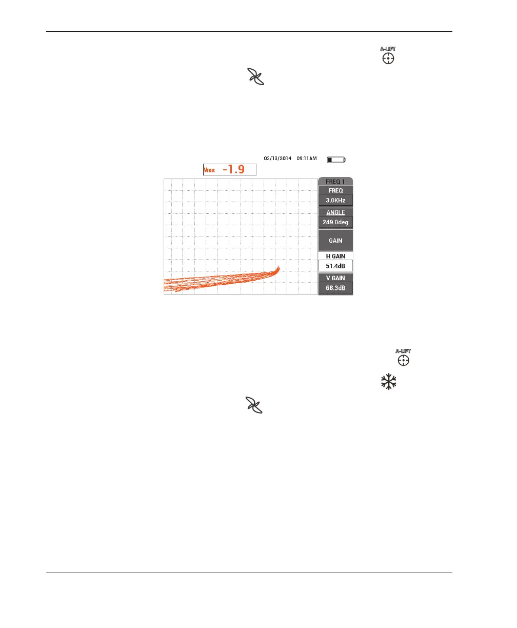 19. Scan the three corrosion defects, and then press the FREEZE key ( ).
