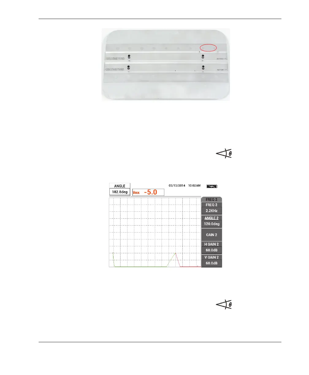 5. While holding the probe in place, press the ANGLE key ( ), and then adjust
