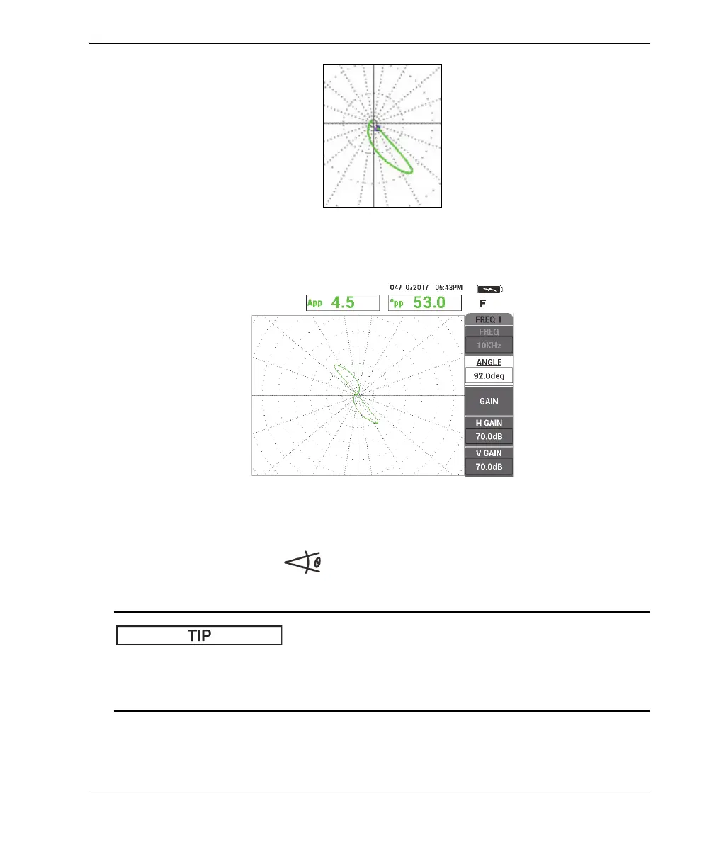 3. Press the ANGLE key ( ), and then rotate the frequency 1 signal (green) until