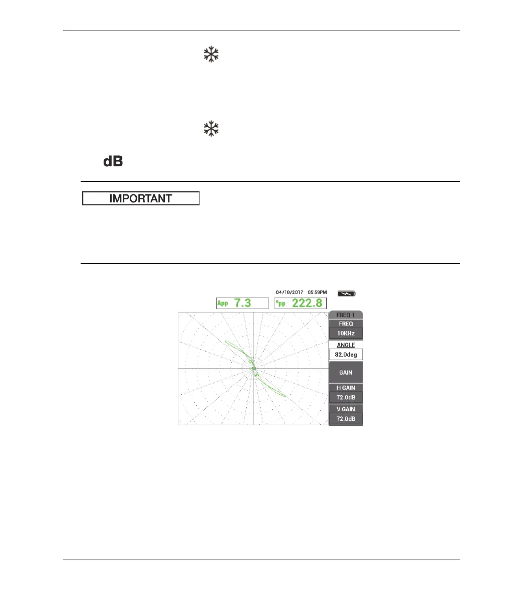8. If the support ring signal exceeds 80 % of full-screen height, press the GAIN key