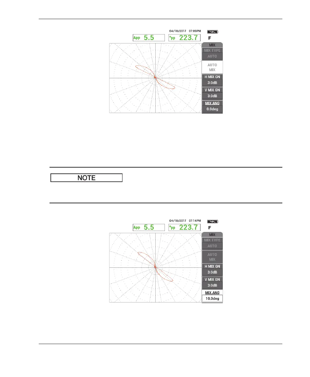 8. Press MIX ANGLE (E key), and then rotate the MIX signal until the hole signal