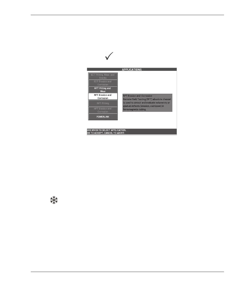 2. Select CONTINUE (press the A key), and then use the knob to select RFT Erosion
