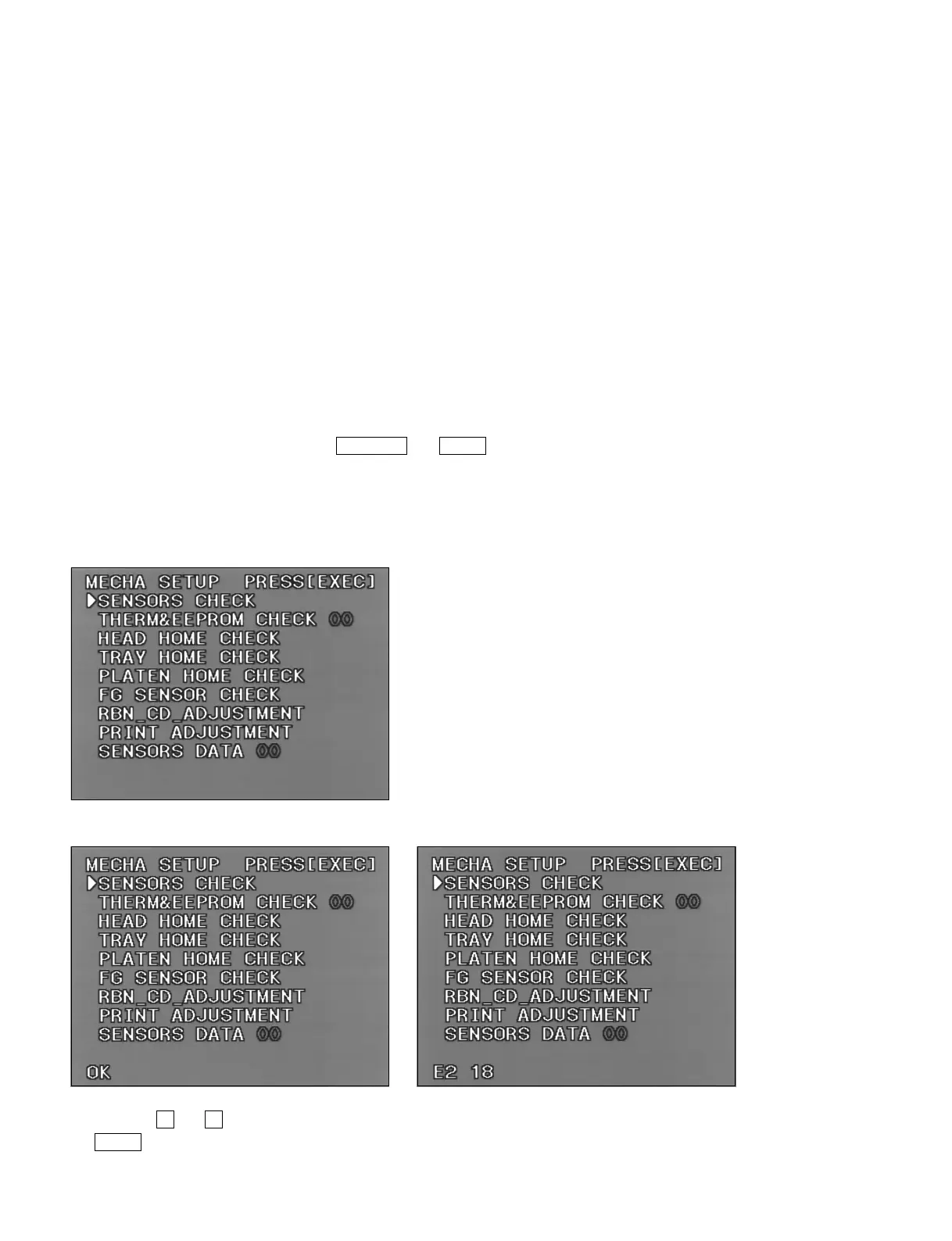 2. The “MECHA_SETUP” menu in the mechanical adjustment mode appears on the screen (or LCD