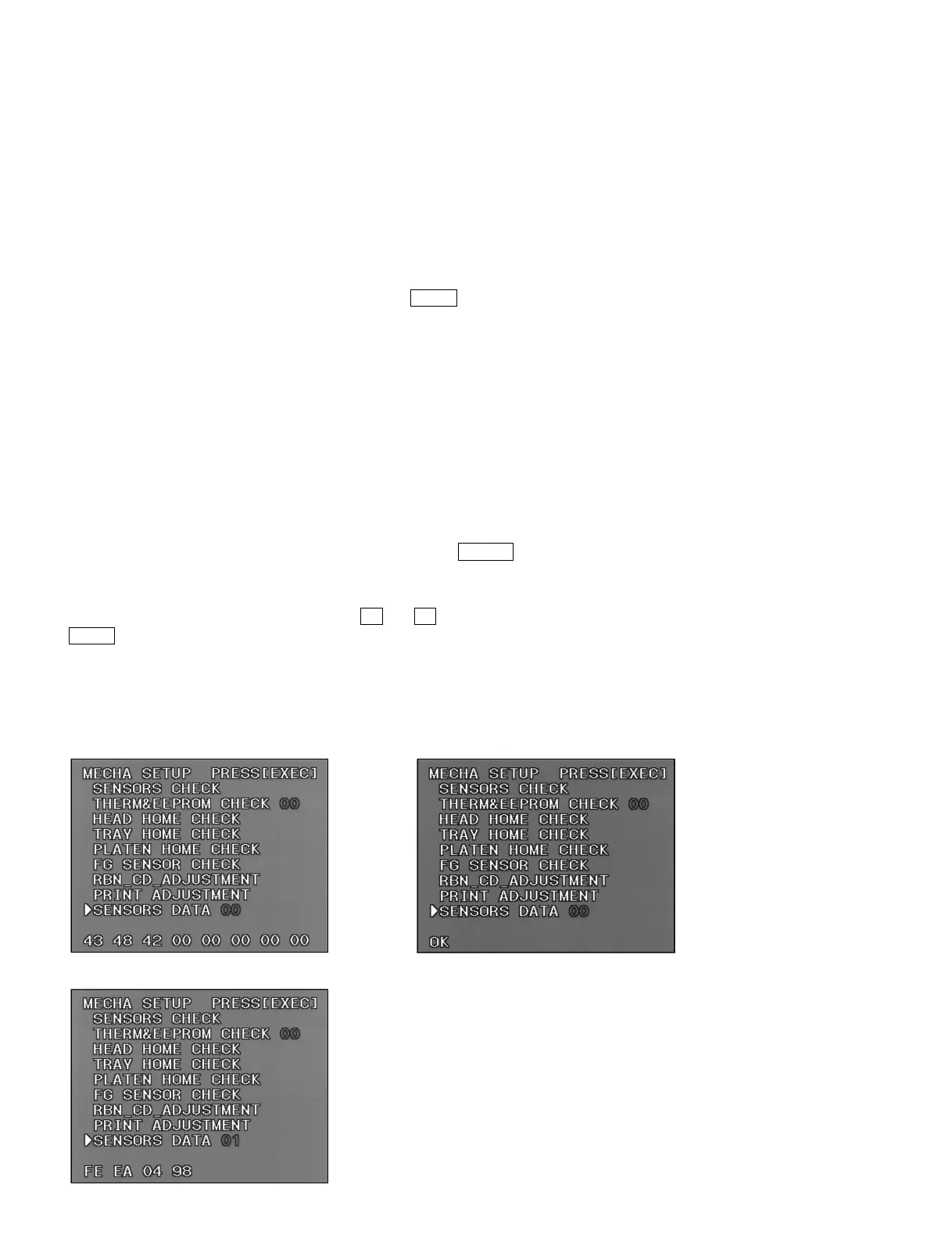 value) of automatically adjusted two sensors are displayed. (RBN_CD sensor and PLT_JAM sensor)