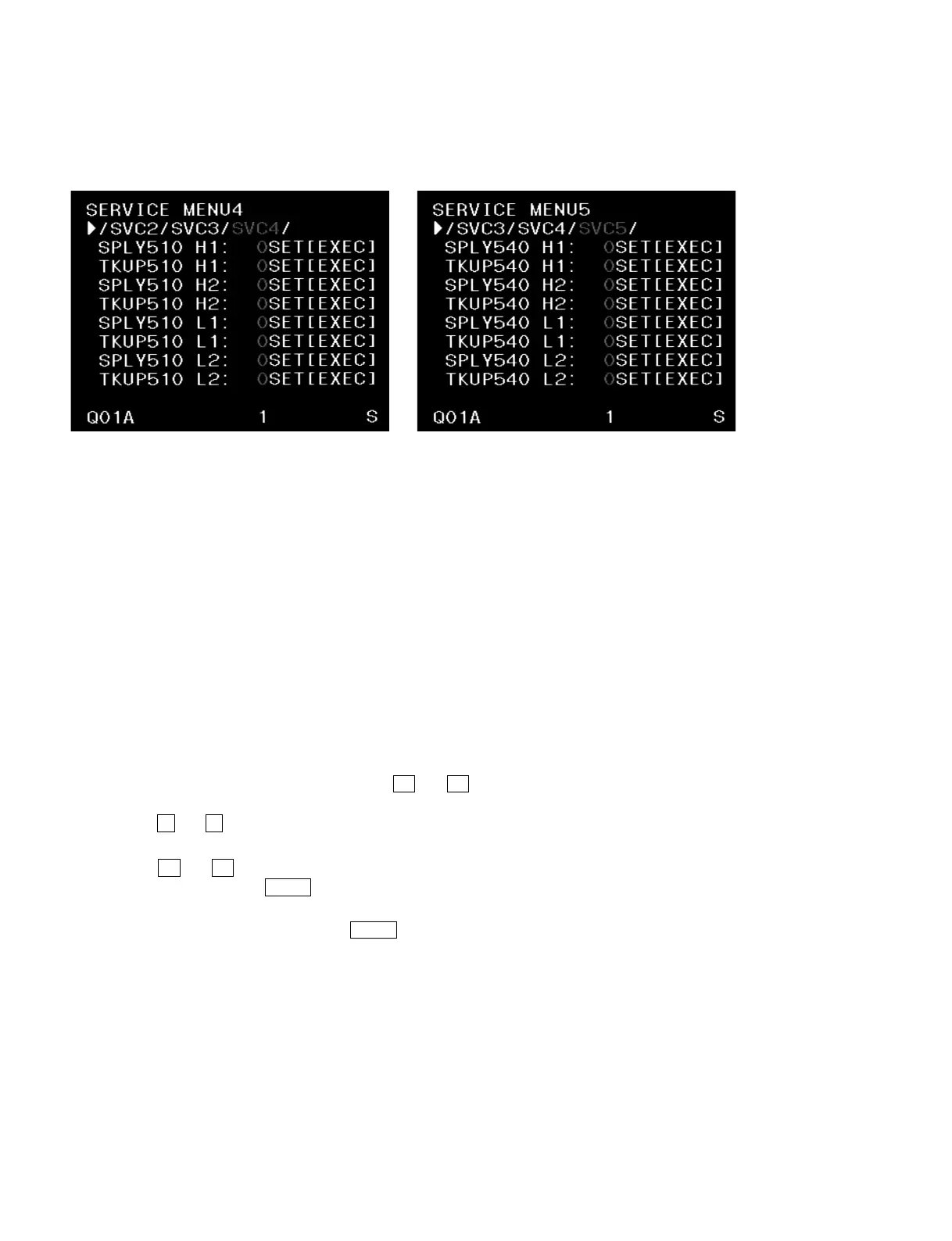 [Service menu 4] [Service menu 5]