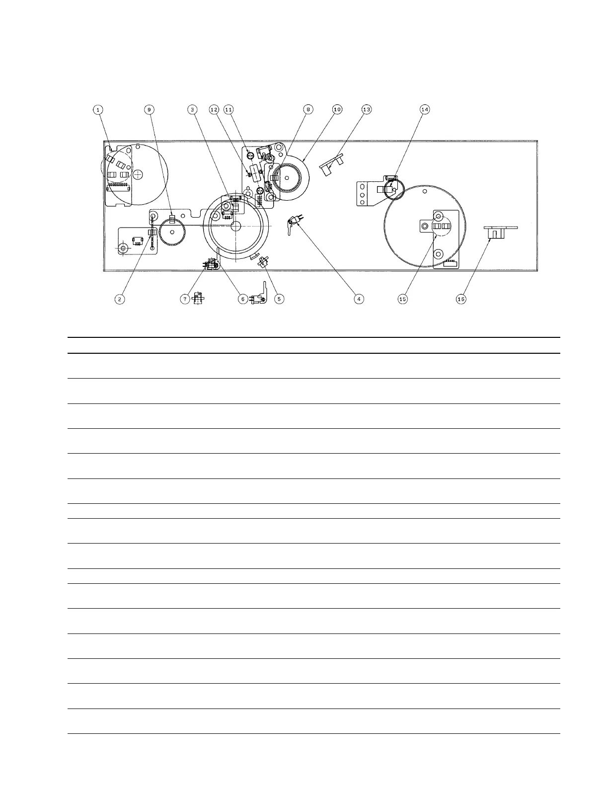 8 Ribbon take-up FG sensor Transmission x 1 Detects rotation of the ribbon take-up motor.
