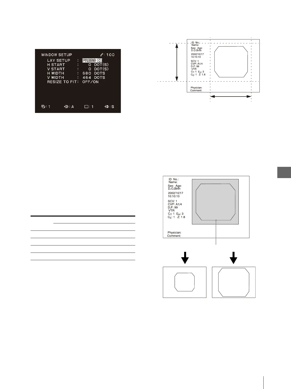 Setting “H START,” “V START,” “H WIDTH,” “V