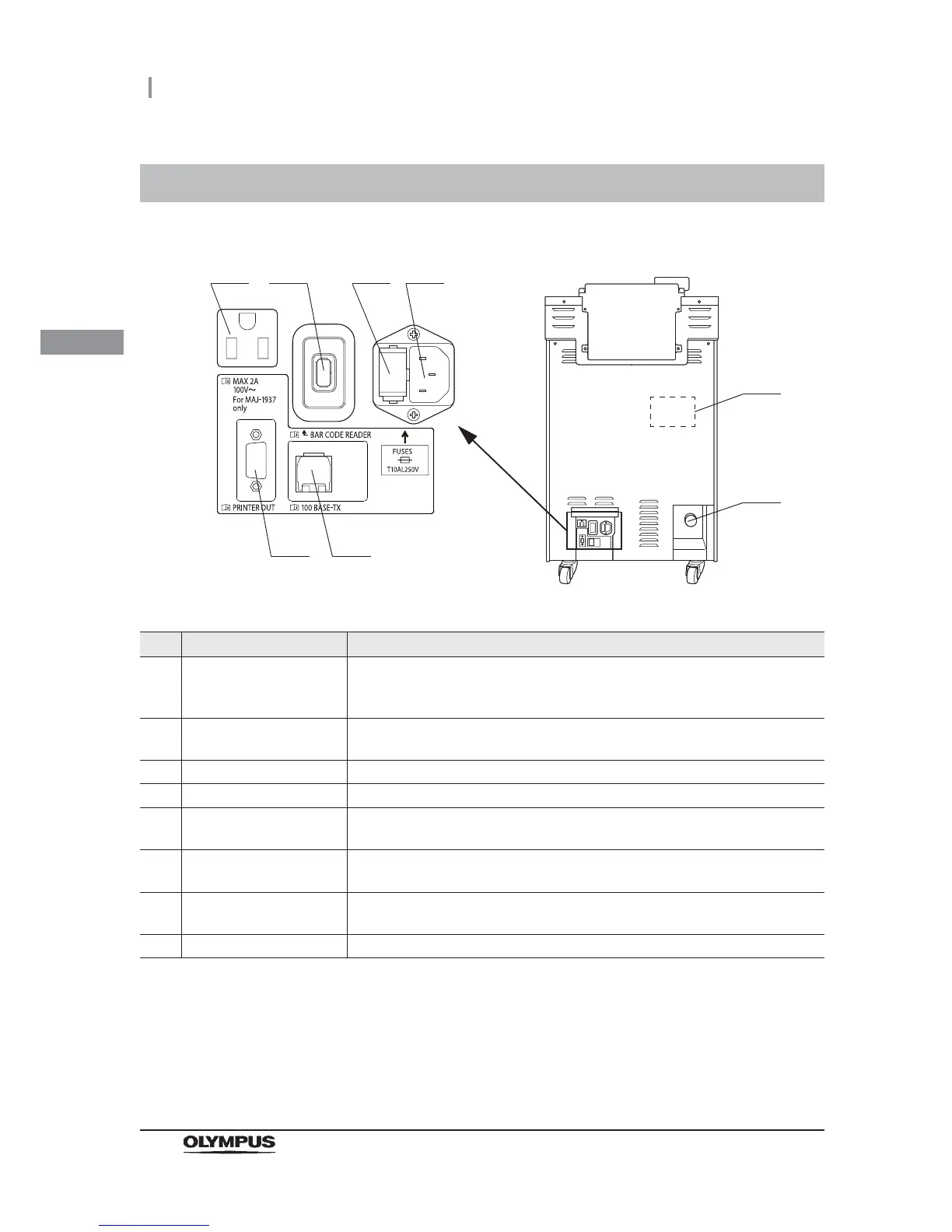 5 100BASE-TX terminal Used to access the Olympus-designated external devices (for trained service