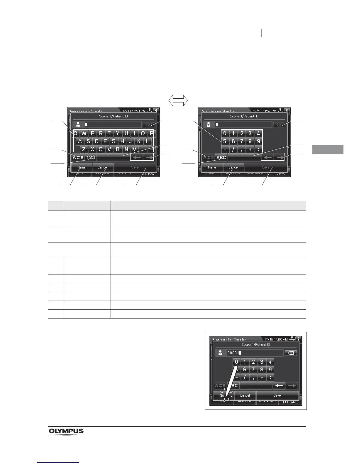 2 The software keyboard (on-screen) is opened. Enter the ID number of the patient on