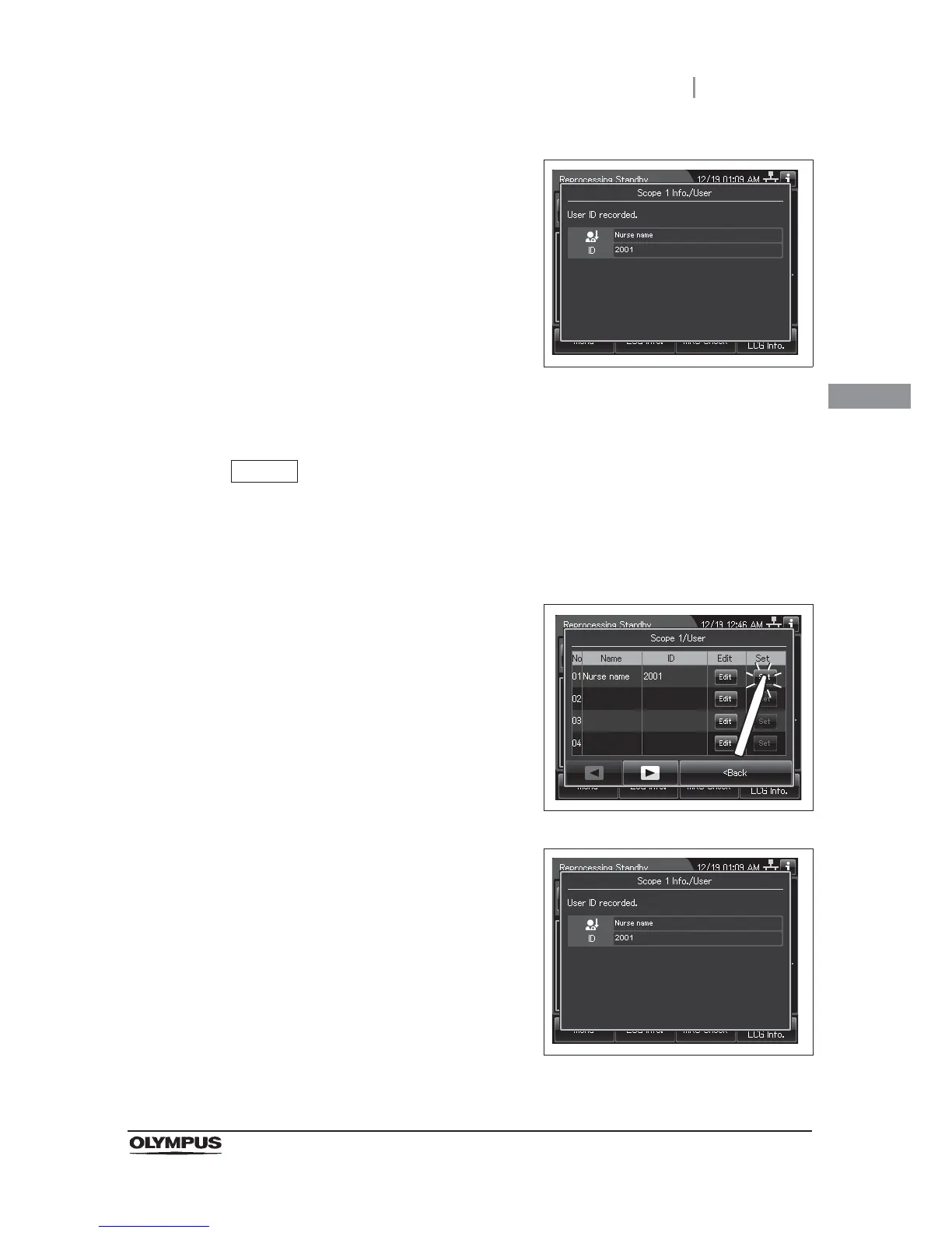 1 Press the “Set” button for the ID to be recalled.