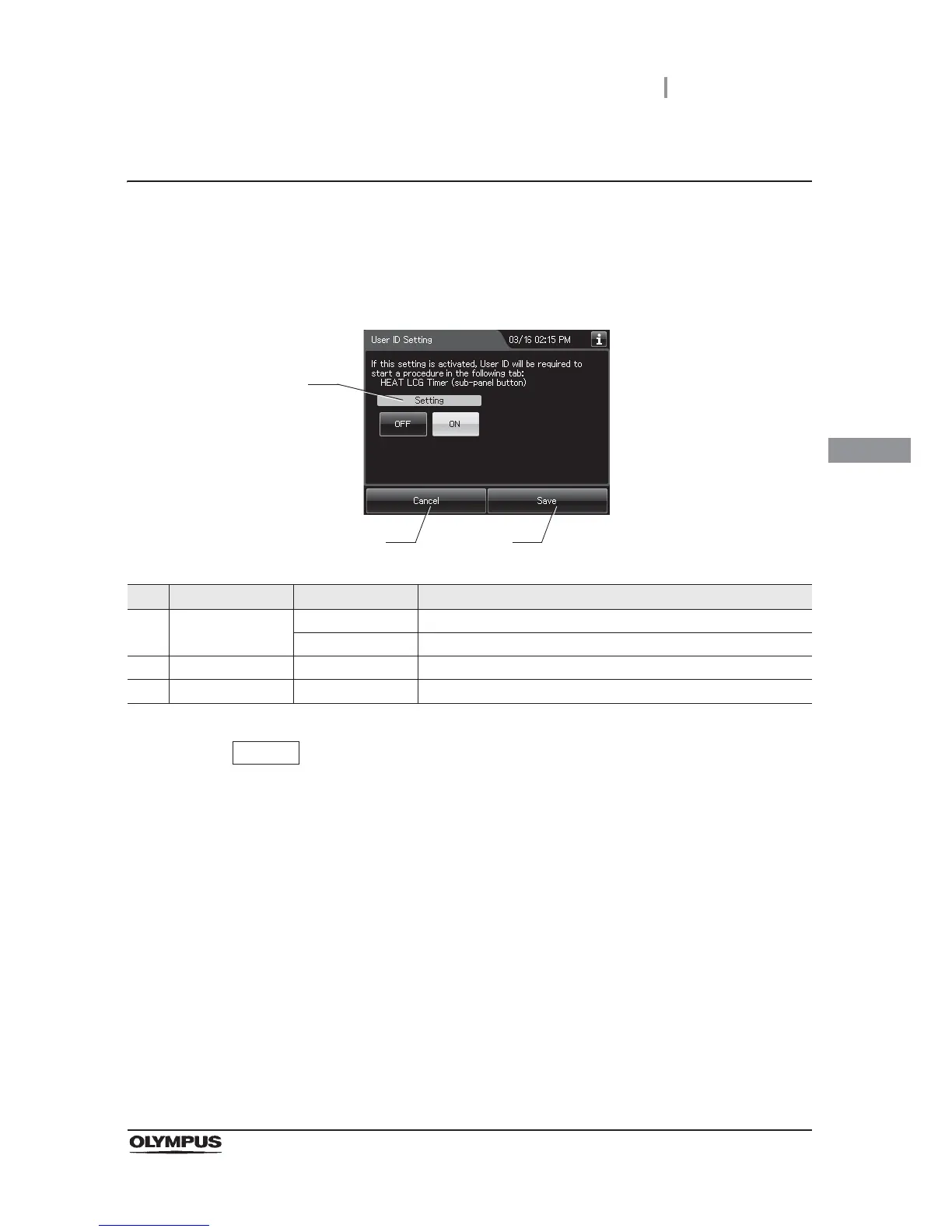 OFF Disable the user ID entry for “Heat LCG Timer”.