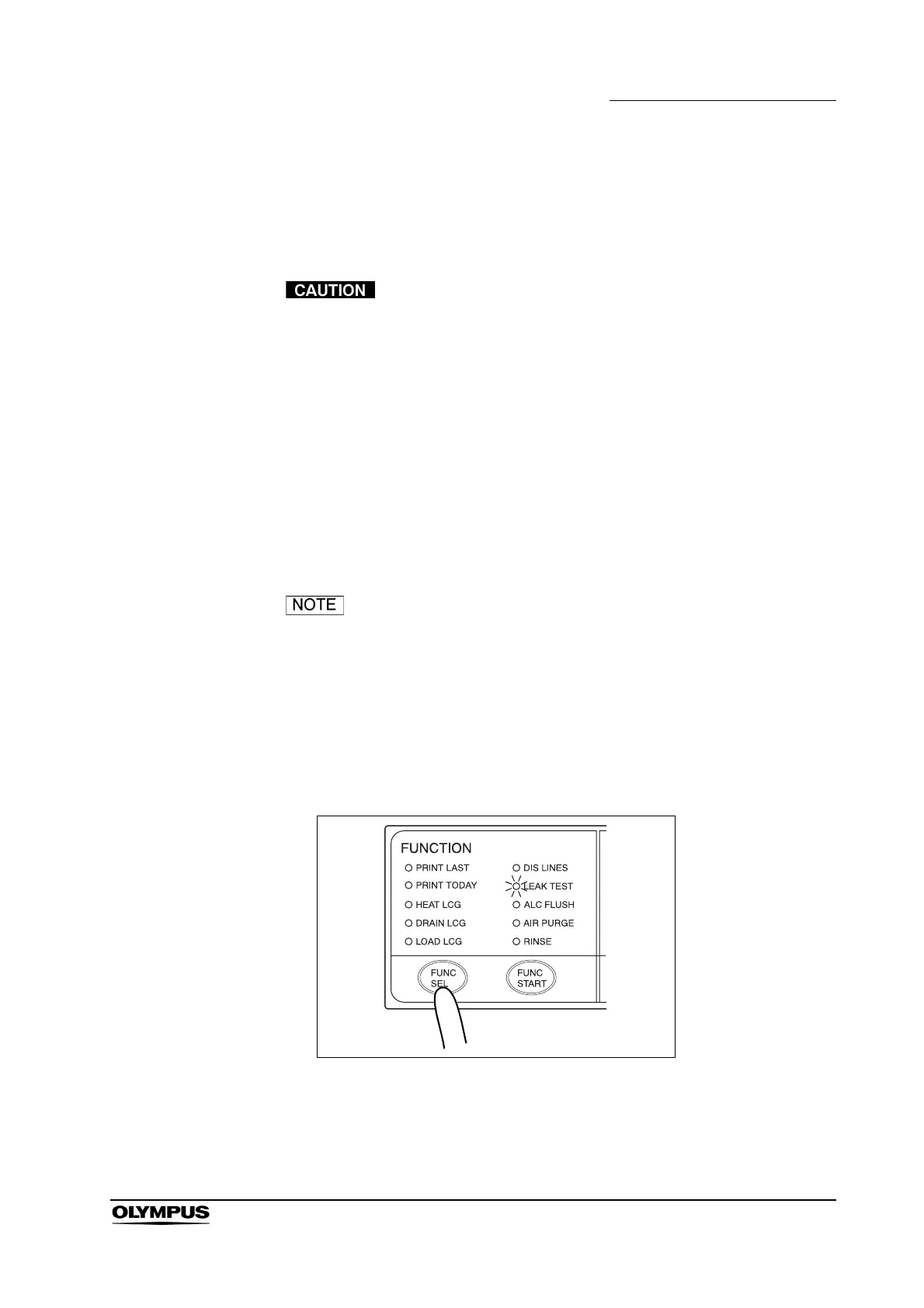 Press the FUNC SEL button on the subcontrol panel to select “LEAK TEST”.