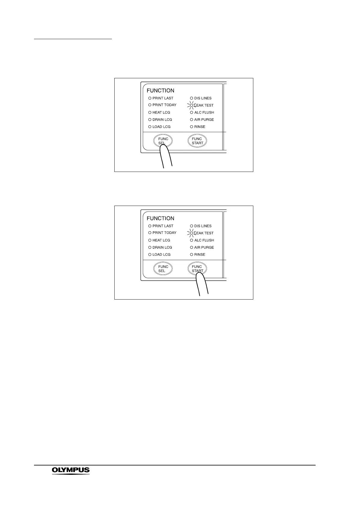 6. Press the FUNC SEL button on the subcontrol panel to select “LEAK TEST”.