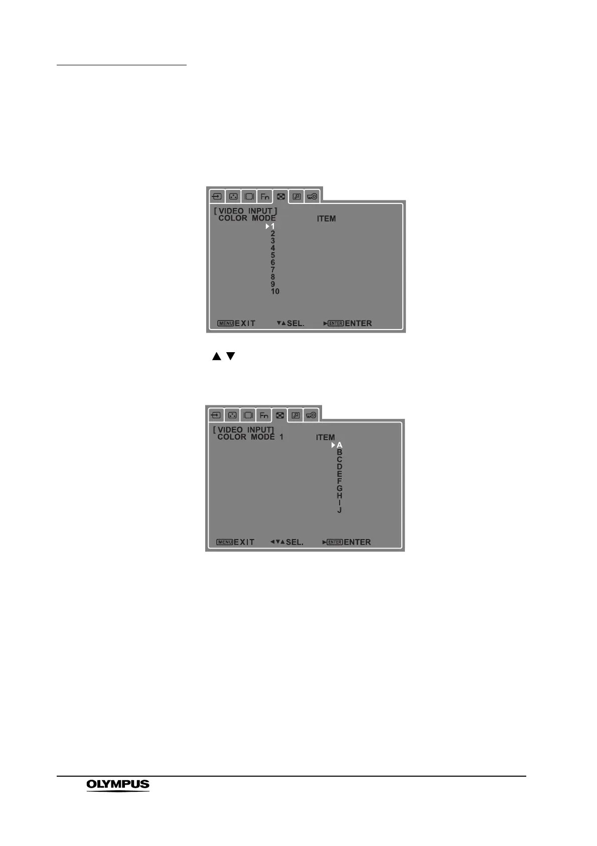 1. Select COLOR MODE in the INPUT submenu screen and press [ENTER].