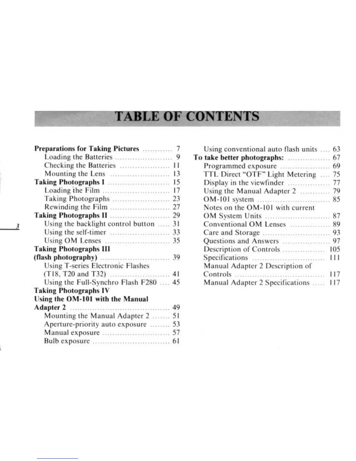 Olympus OM 101 Power Focus - Table of Contents