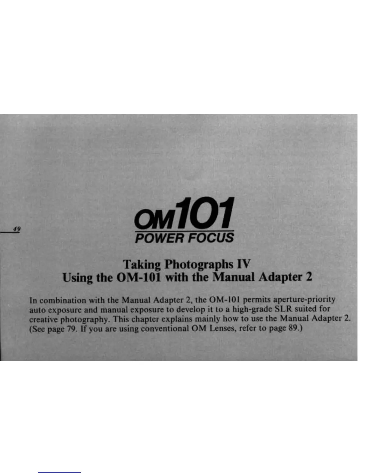 Olympus OM 101 Power Focus - Taking Photographs IV
