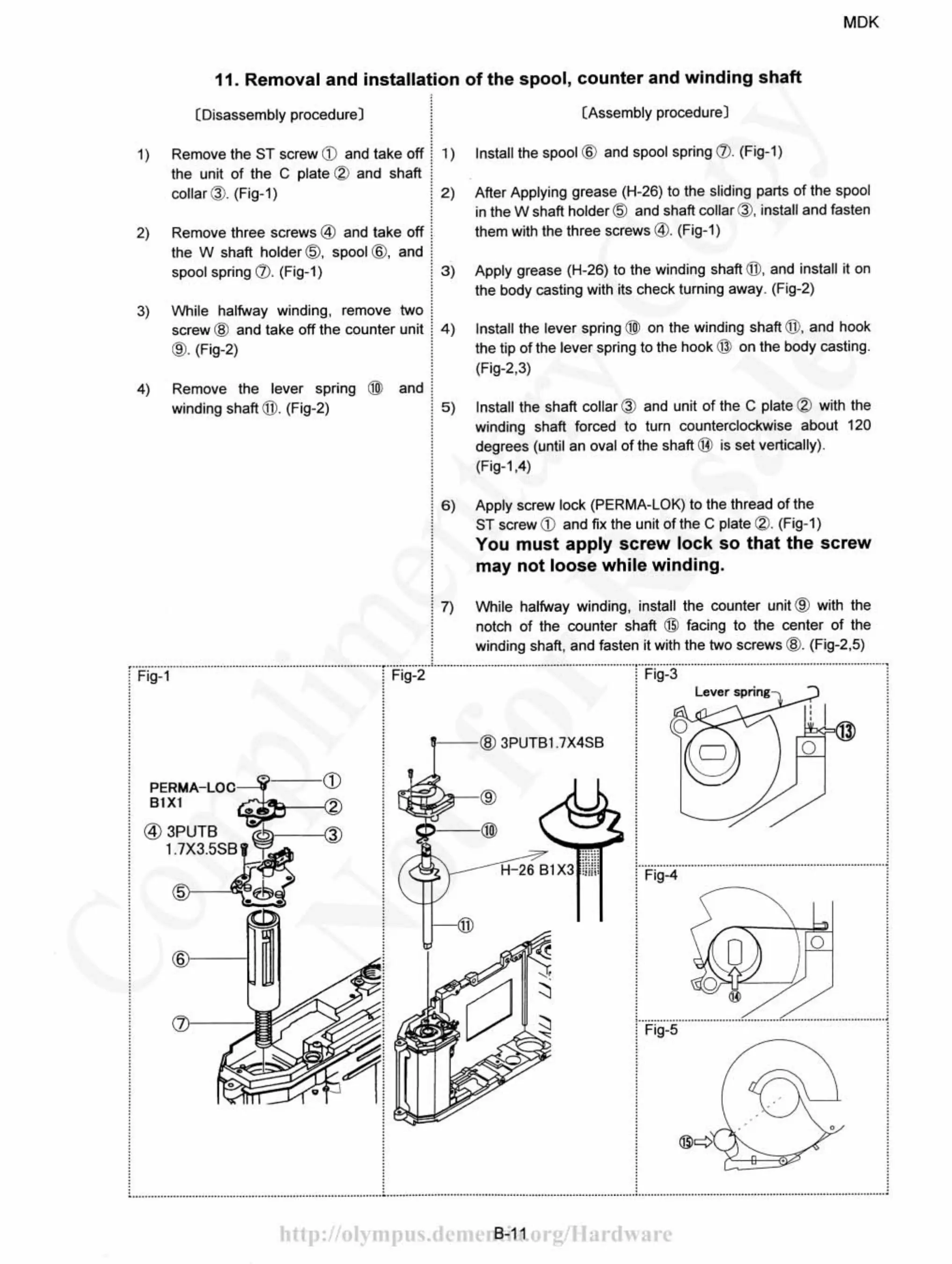 Olympus OM 2000 - Removal and installation of the spool, counter and winding shaft