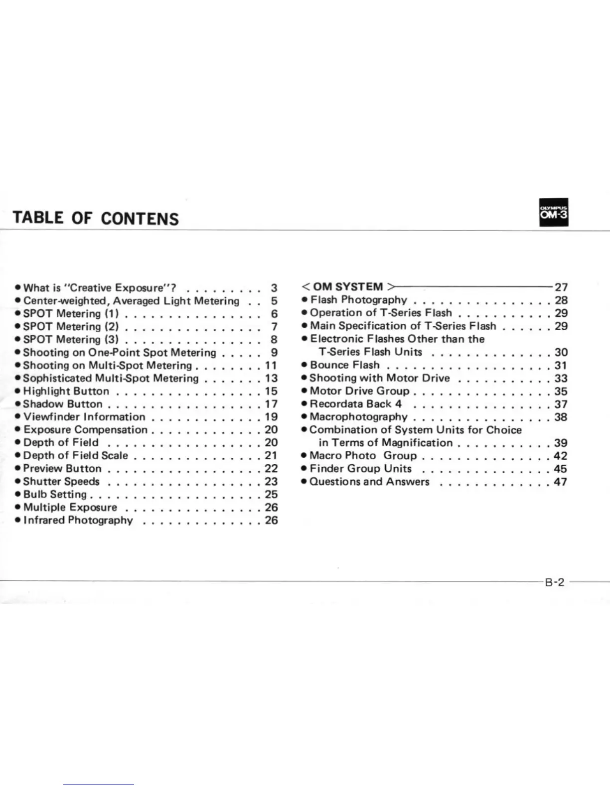 Olympus om-3 - Table of Contents