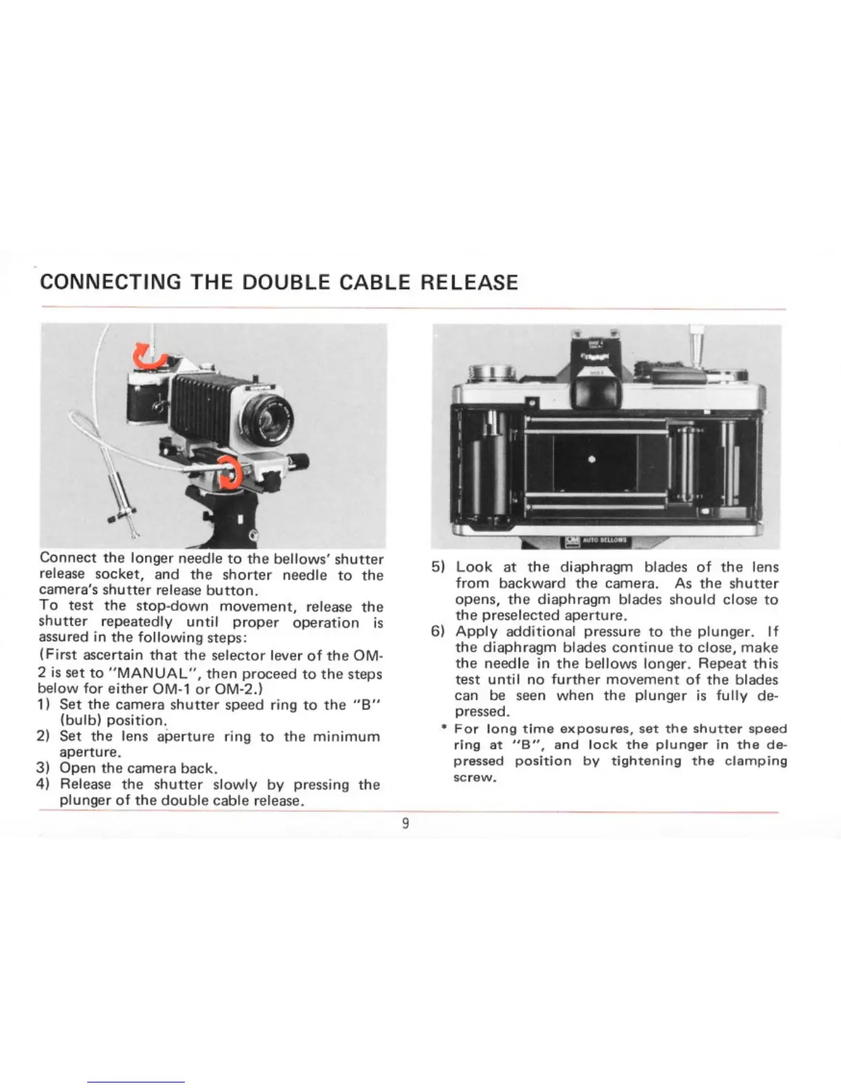 Olympus OM - CONNECTING THE DOUBLE CABLE RELEASE