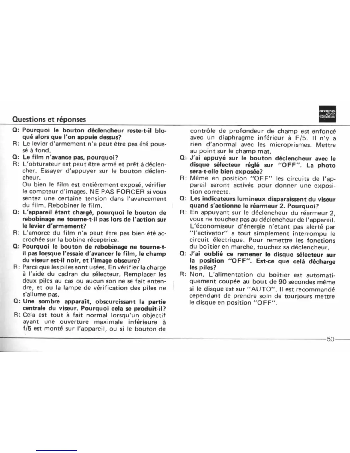 Olympus OM20 - Page 51