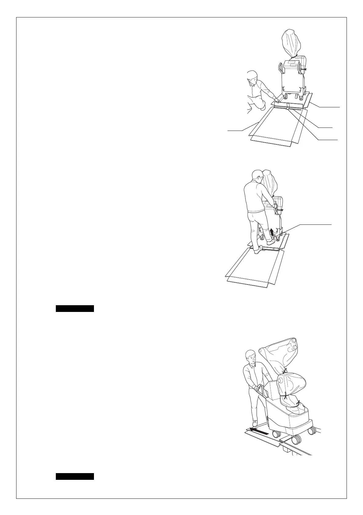 • Be careful not to have your foot caught under this instrument or caster. Otherwise, foot injury may result.