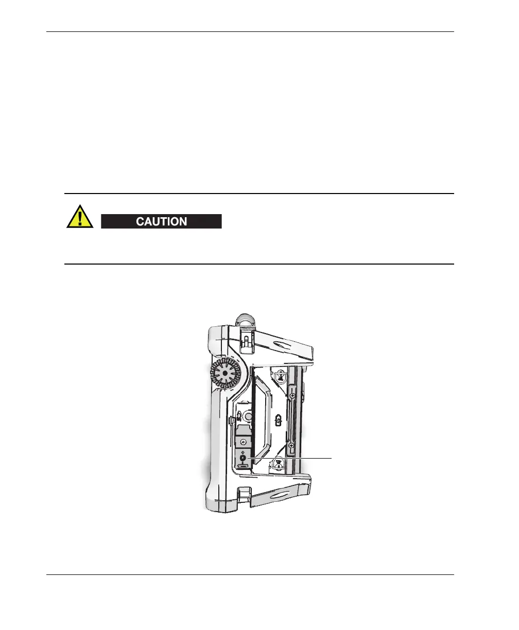 2. On the right-hand side of the OmniScan MX2, lift the rubber seal covering the DC