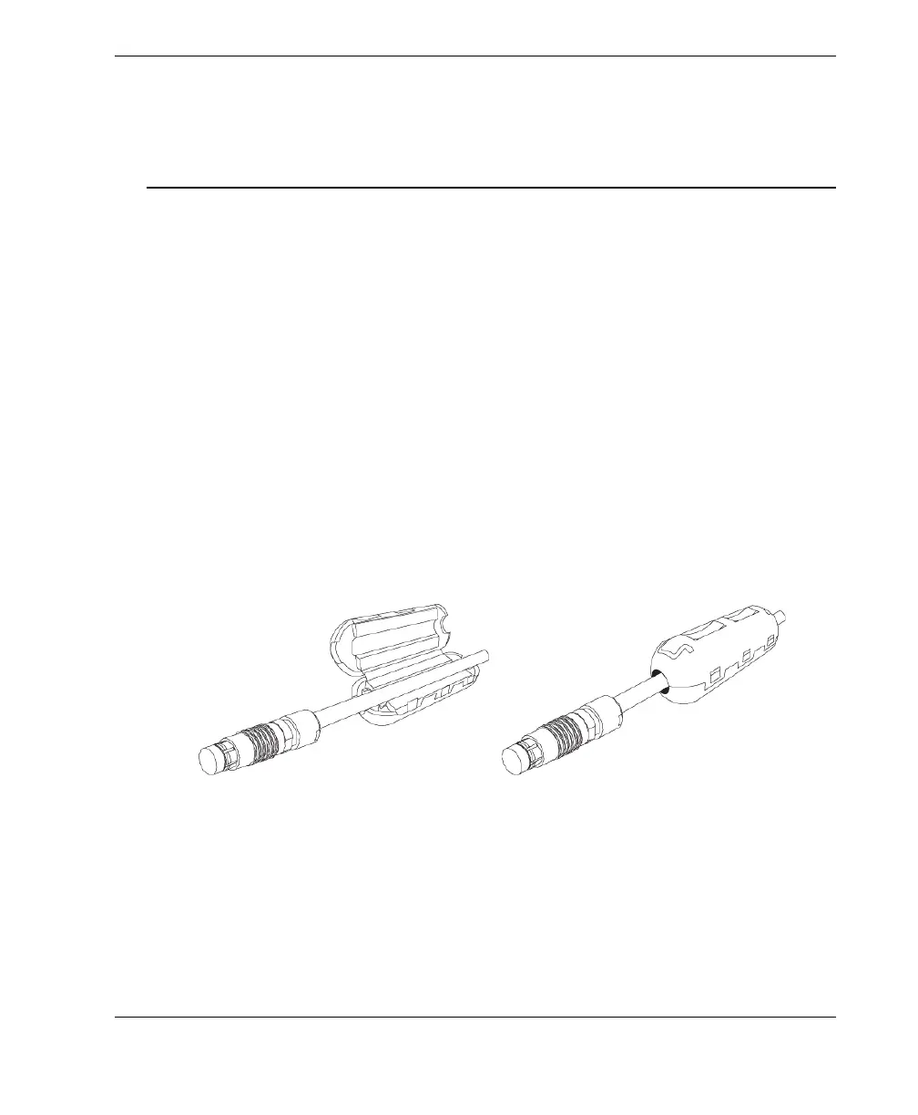 Figure 2-7 Attaching a ferrite clamp filter to a cable (example shown with the
