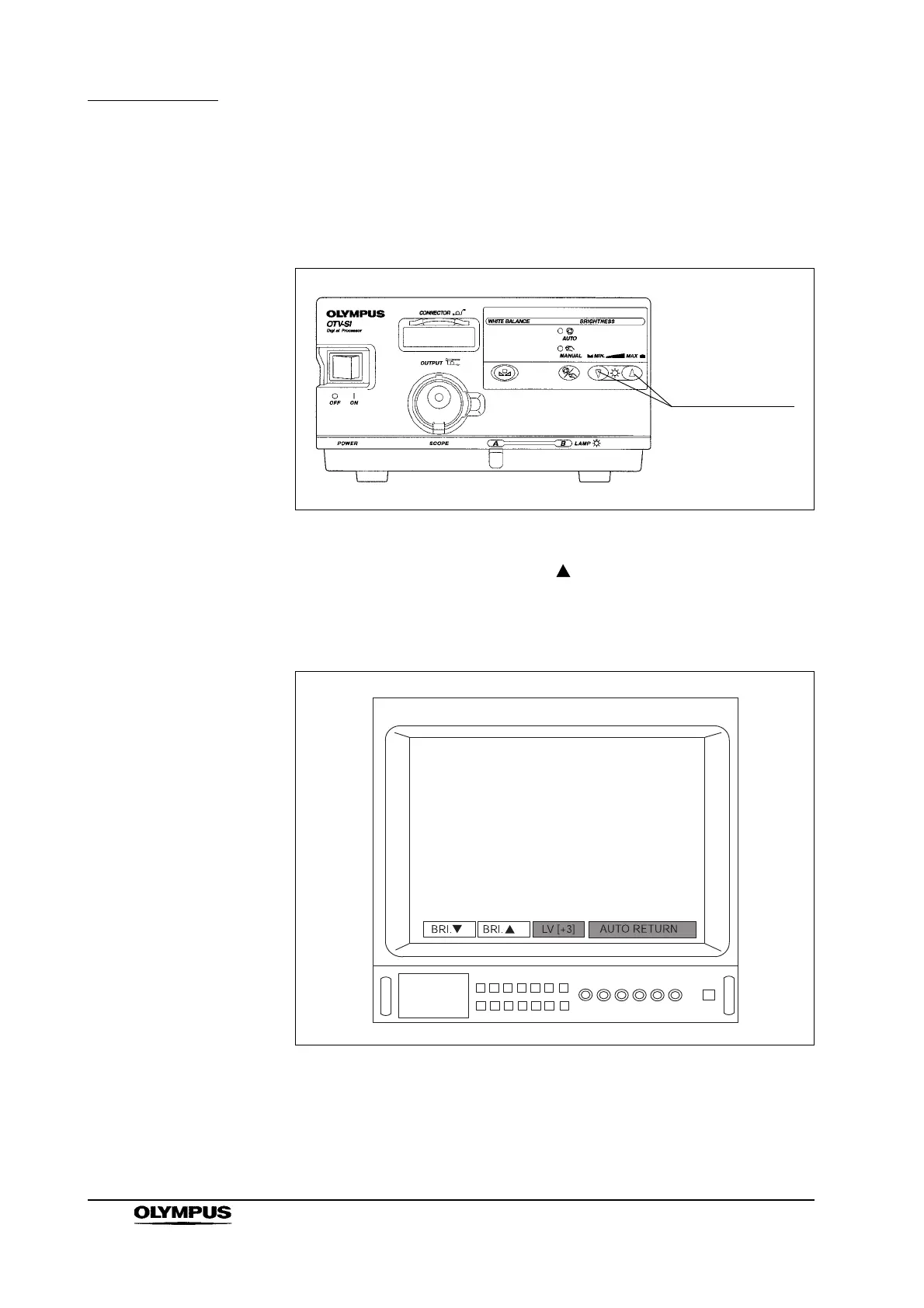 pressed, the menu value on the video monitor increases, and the brightness