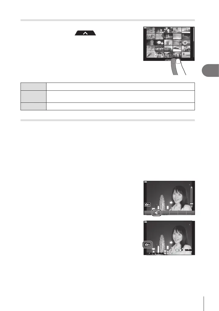 After taking photos in the self-portrait mode (P. 78), tap 5 to switch to the