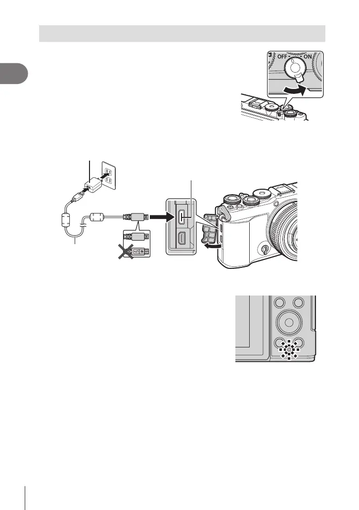 • The USB-AC adapter cannot be used to charge the battery when the camera is on.