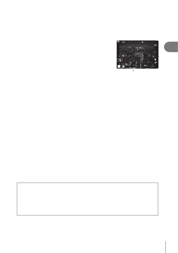 • During bulb/time photography, the brightness of the subject in the display is enhanced for
