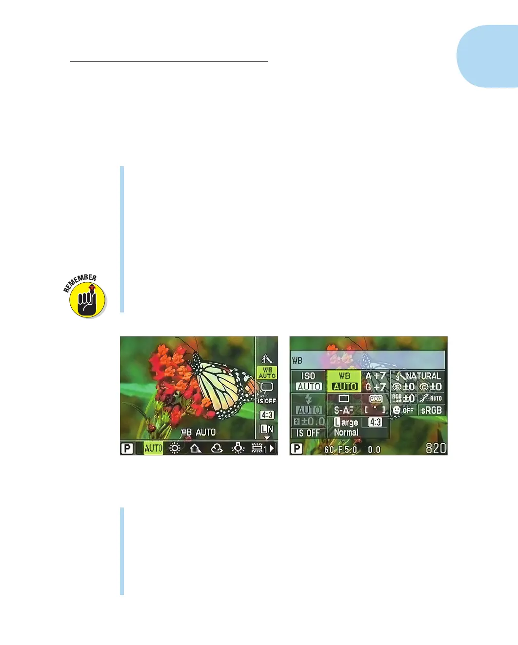 view all critical picture-taking settings together, as shown on the right