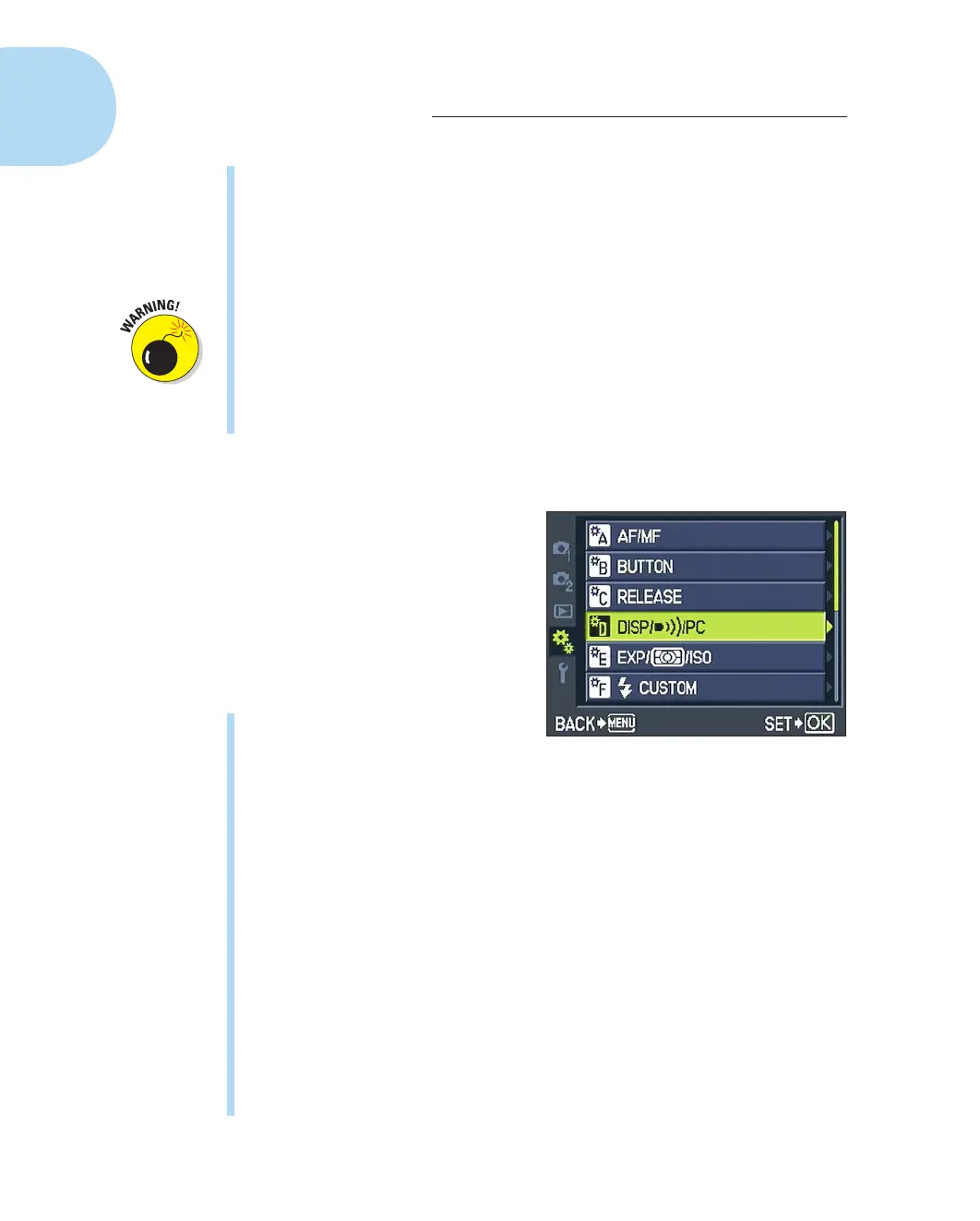 Exploring setup options on the Custom menu
