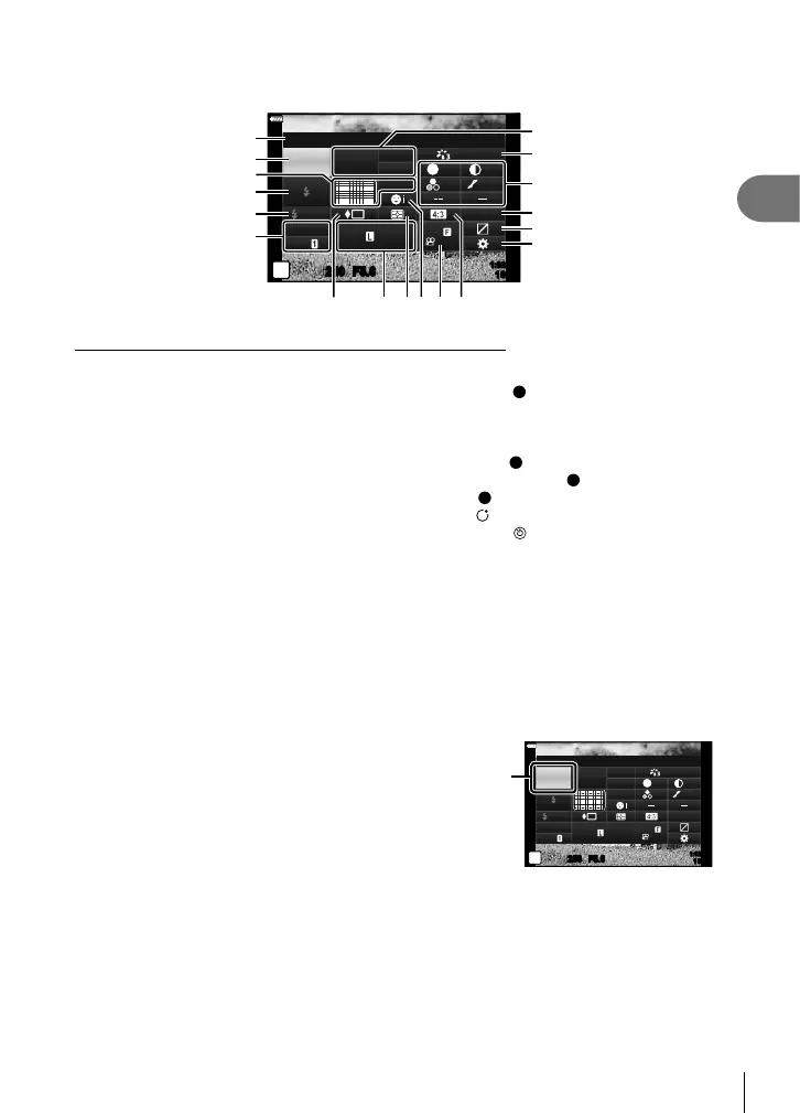 • Settings can also be adjusted using the control dial or touch controls.