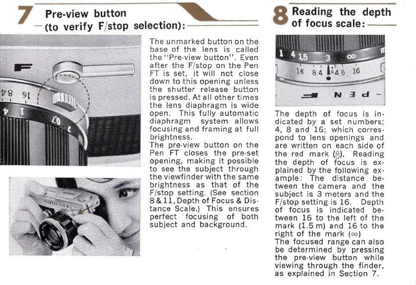 Olympus Pen FT - Focusing Aids and Depth of Field; Pre-view Button Functionality; Interpreting Depth of Focus Scale