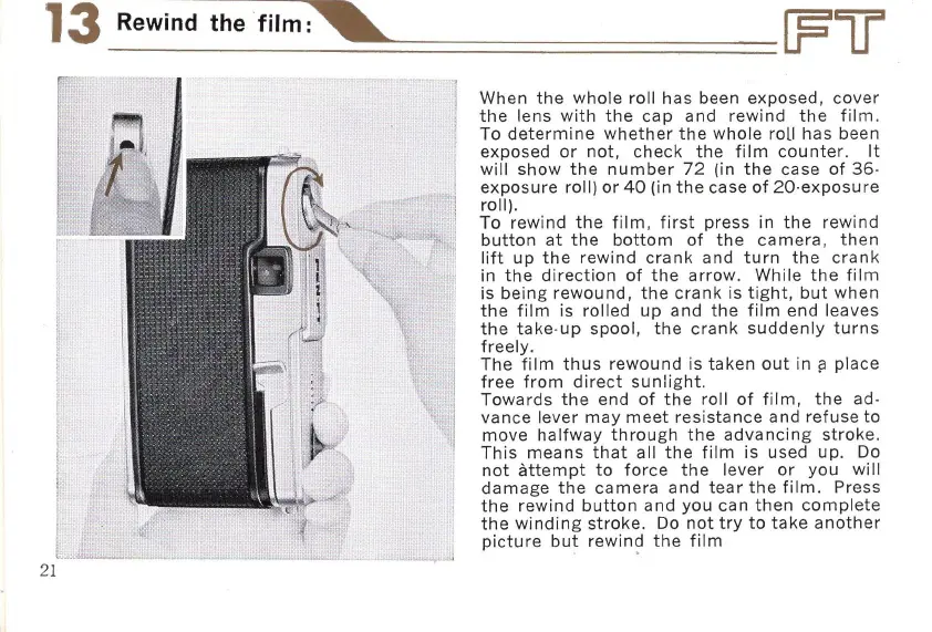 Olympus Pen FT - Rewinding Exposed Film; Film Rewinding Procedure