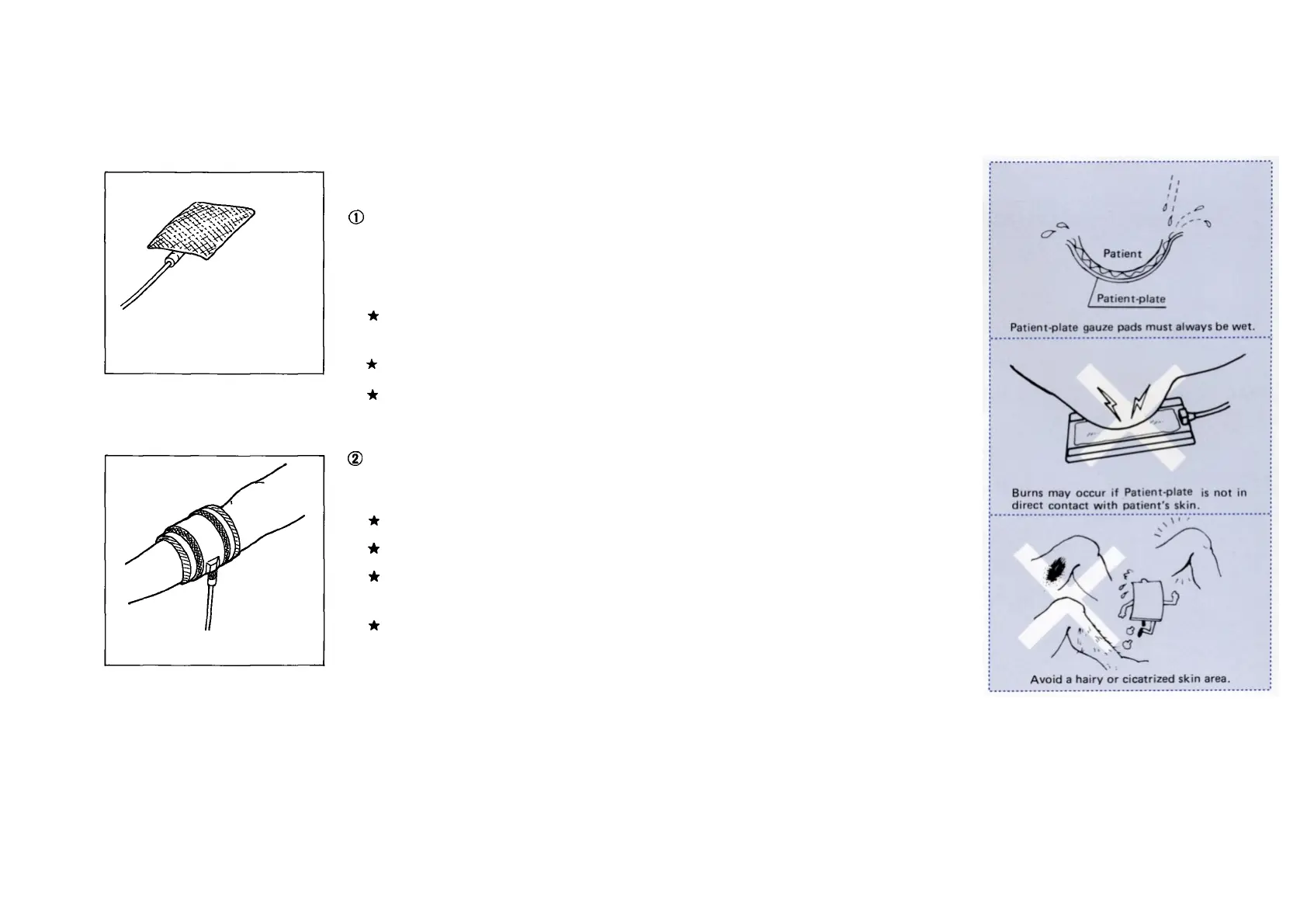 Do not apply the Patient-plate to a hairy or cicatrized skin area.