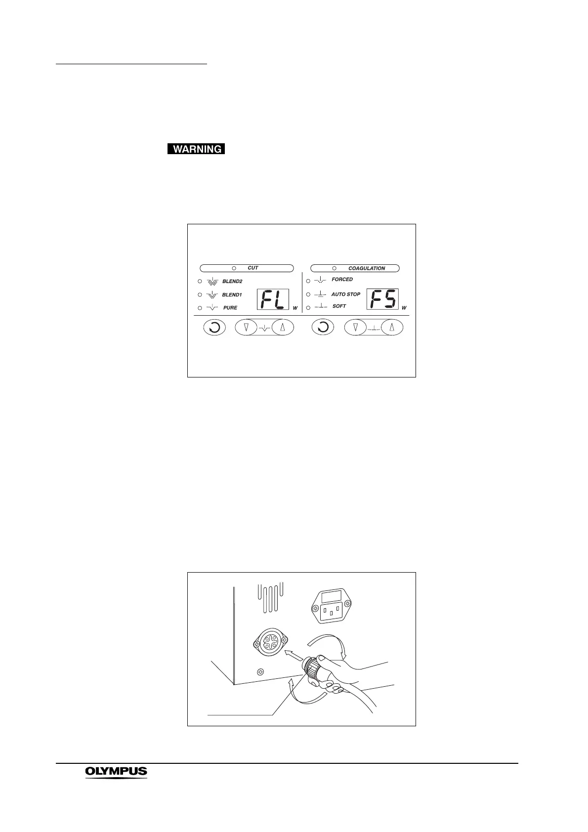 the rear panel of the electrosurgical unit, and rotate the fastener ring fully