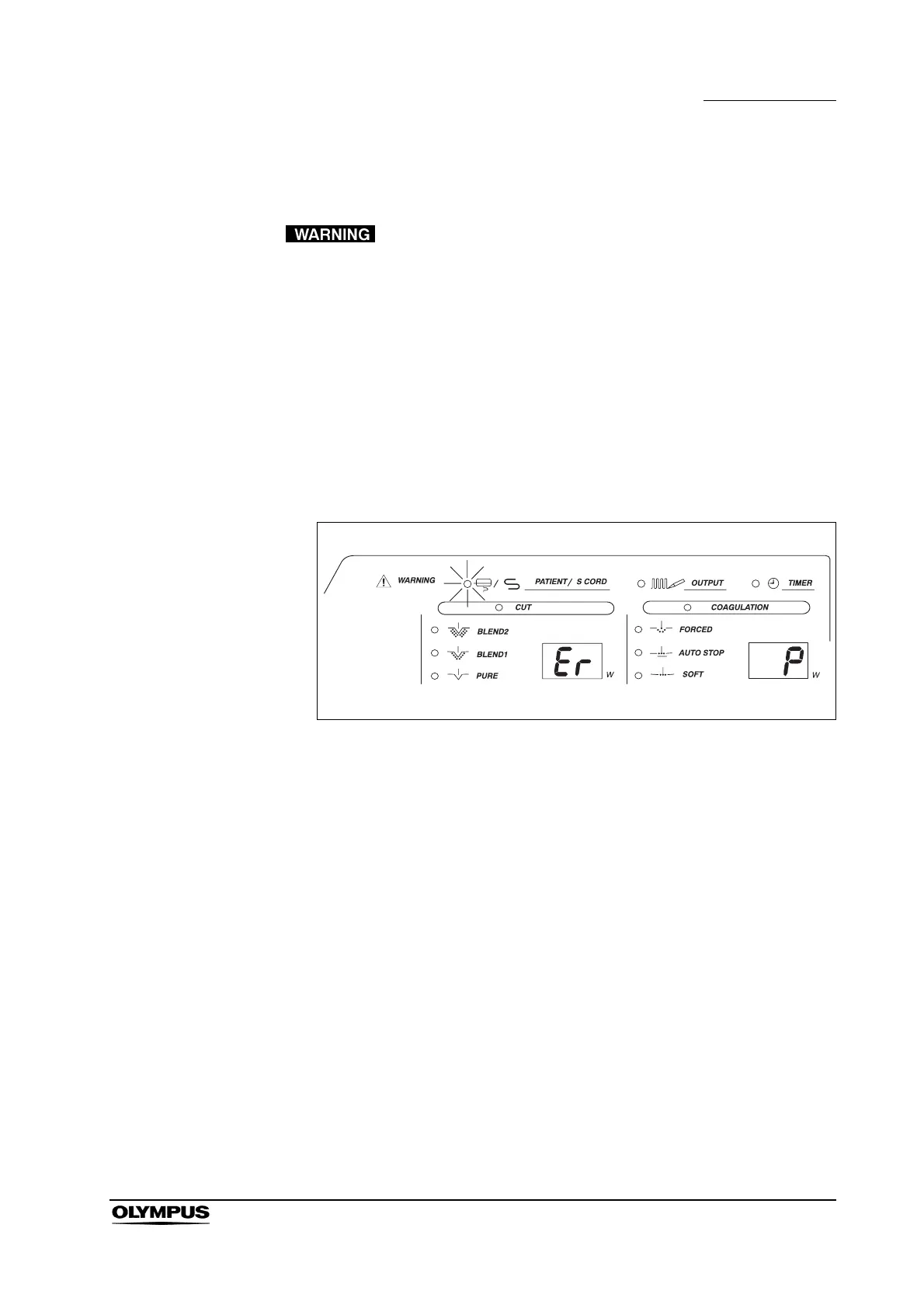 2. Confirm that the patient/S-cord warning indicator lights up and the warning