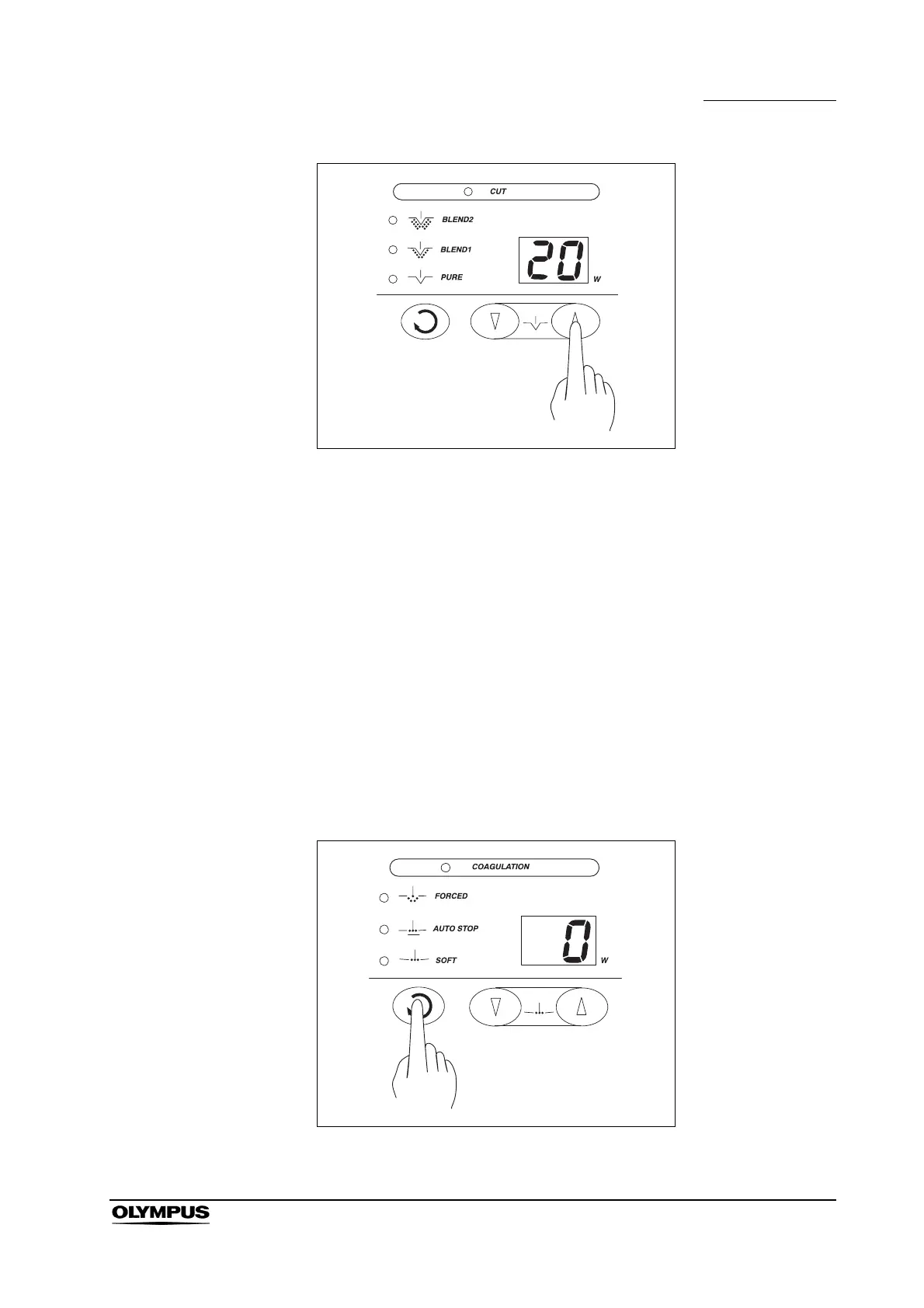 1. Confirm that each time the coagulation mode selector is pressed, the