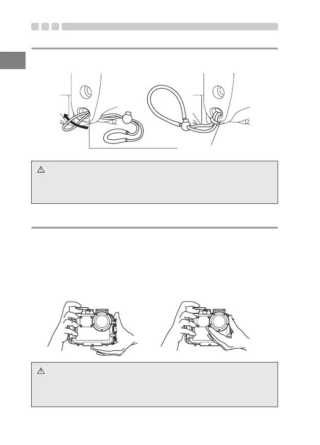 上図にしたがってストラップを正しく取り付けてください。万一、誤った取