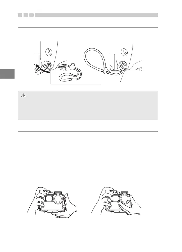 Die Handgelenkschlaufe unbedingt einwandfrei wie oben gezeigt anbringen.