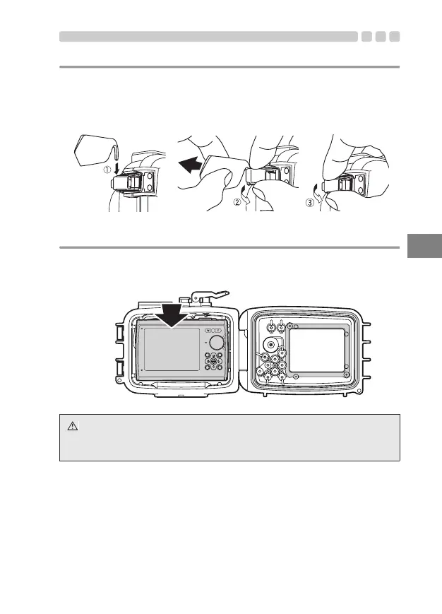 Olympus PT-043 - 打开防水机壳; 装入数码照相机